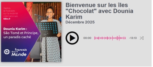 📻 Dans ce nouvel épisode du podcast de la webradio des Français dans le Monde, réalisé en partenariat avec la Fondation des Alliances Françaises, Gauthier Seys nous emmène à la découverte de l’Alliance Française de São Tomé-et-Principe (25 ans d’existence). 🌍 En une dizaine de minutes, il échange avec Dounia Karim, directrice de l’Alliance, pour évoquer la vie culturelle, les projets et le dynamisme de cette institution au cœur de l’archipel, souvent surnommé « les îles chocolat », au large du golfe de Guinée. ÉCOUTER L’INTERVIEW >>