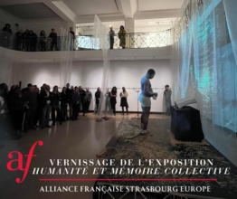 Le 14 janvier 2026, l’Alliance Française de Strasbourg a accueilli 130 personnes à l’occasion de l’ouverture des Semaines Camerounaises et de l’inauguration de l’exposition Humanité et mémoire collective de Justin Ebanda, commissariat Carole Kvasnevski. La performance de l’artiste a saisi le public en un temps très court. Ce fut une expérience marquante, portée par la vidéo et par le corps, vecteur du message. Une performance dense, habitée, qui nous a traversés autant que l’artiste semblait lui-même traversé par ce qu’il livrait. Les convives sont repartis avec un sentiment étrange, difficile à nommer, mais très présent : quelque chose est resté …
