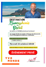 La Francophonie au Brésil à l’honneur 🇧🇷 🇫🇷 De l’Alliance Française de Rio de Janeiro au Boulevard Raspail, la Francophonie au Brésil sera mise à l’honneur cette semaine avec l’avant-première de Destination Francophonie au Brésil, l’émission de TV5MONDE présentée par Ivan Kabacoff. « Un voyage de Rio de Janeiro à l’Amapá à la découverte d’une francophonie brésilienne inattendue. » 📍 Projections en avant-première Mercredi 22 octobre – Théâtre de l’Alliance Française (événement privé sur invitation) Jeudi 23 octobre – Alliance Française de Rio de Janeiro Une occasion unique de célébrer le dynamisme des Alliances Françaises au Brésil, et de faire rayonner la langue …