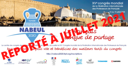 𝗜𝗡𝗙𝗢𝗥𝗠𝗔𝗧𝗜𝗢𝗡 – 𝗥𝗘𝗣𝗢𝗥𝗧 𝗱𝘂 𝗫𝗩𝗲 𝗖𝗼𝗻𝗴𝗿𝗲̀𝘀 𝗺𝗼𝗻𝗱𝗶𝗮𝗹 𝗱𝗲 𝗹𝗮 𝗙𝗜𝗣𝗙 (Fédération internationale des professeurs de français) Face à la crise sanitaire internationale qui paralyse toutes les sphères d’activités et aux mesures de précaution prises dans tous les pays, le Conseil d’administration de la FIPF, en concertation avec le Comité d’organisation tunisien, a décidé du report du Congrès mondial de Nabeul d’une année entière. Retrouvez toutes les infos ici👉https://bit.ly/2X58k6K