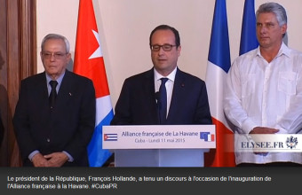 Discours filmé du président de la République lors de l’inauguration de l’Alliance française de La Havane, dans le Palacio Gomez, 11 mai 2015.