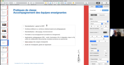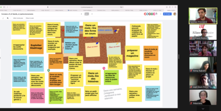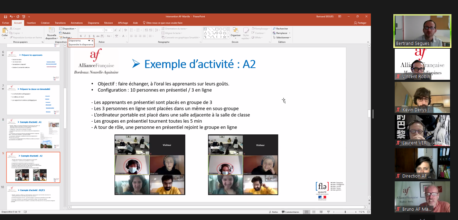 La digitalisation de l’offre de cours a aussi profondément modifié les habitudes de notre public, pas toujours désireux de reprendre le chemin des salles de classe soumises à de nombreuses contraintes sanitaires. Les classes co-modales font ainsi leur chemin dans le réseau, notamment à l’Alliance Française de Bordeaux qui a partagé les résultats de son expérience. Ce deuxième axe de la formation a été l’occasion de faire le point sur le matériel, les défis pédagogiques soulevés et la communication en interne comme en externe, nécessaires pour intégrer cette modalité innovante.