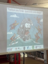 Elle s’est poursuivie à la médiathèque avec une présentation du thème « Plastique dans l’Océan : quand la BD contre-attaque », animée par Emmanuelle Roque et Thierry Bouvier, intervenants du CNRS (Centre National de la Recherche Scientifique), avec l’appui des stagiaires de l’Institut Halieutique des Sciences Marines, impliqués dans le projet.