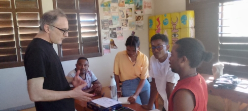 La journée a débuté par un pot de bienvenue organisé par l’équipe de l’Alliance Française de Tuléar, réunissant l’auteur, les intervenants, leur équipe ainsi que les bénéficiaires de la résidence.